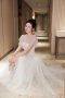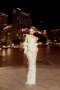 เดรสยาวสีขาวเกาะอกผ่าข้างทรงคอร์เซ็ตตกแต่งคริสตัล