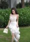 เดรสยาวสีขาวเกาะอกทรงคอร์เซ็ตตกแต่งขนนกที่กระโปรง