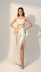 เดรสยาวสีขาวแขนกุดผ้าซีทรูเว้าเอวผ่าข้างตกแต่งงูคริสตัล
