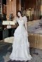 เดรสยาวสีขาวแขนสั้นตกแต่งขนนก คริสตัลและมุก