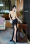 เดรสยาวสีดำคล้องคอเว้าเอวโชว์แผ่นหลังผ่าหน้าตกแต่งคริสตัล