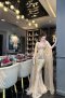 เดรสยาวสีทองสายเดี่ยวตกแต่งคริสตัลและผ้าคลุมไหล่
