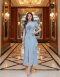 เดรสยาวสีฟ้าทรงระบายมีผ้าคลุมไหล่ตกแต่งคริสตัลรูปโบว์