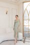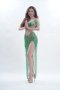 เดรสยาวสีเขียวดีไซน์ลูกปัดทั้งชุด เว้าเอวและผ่าข้าง