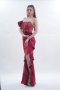 เดรสยาวสีแดงเกาะอกผ่าหน้าตกแต่งคริสตัลสีแดง