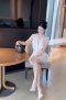 เดรสสั้นสีขาวคล้องคอทรงระบายตกแต่งคริสตัลทั้งชุด