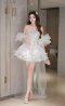 เดรสสั้นสีขาวเกาะอกตกแต่งดอกไม้และคริสตัลทั้งชุด
