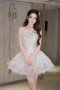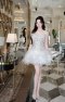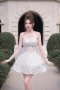 เดรสสั้นสีขาวเกาะอกตกแต่งผ้าซีทรูและคริสตัลทั้งชุด