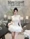 เดรสสั้นสีขาวแขนยาวคอเต่าผ้าซีทรูตกแต่งกลิตเตอร์ทั้งชุด