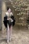 เดรสสั้นสีดำปาดไหล่ตกแต่งคริสตัล ขนนกและลูกปัด